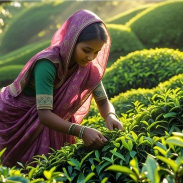 HAND-PLUCKING WITH THE "TWO LEAVES AND A BUD" TECHNIQUE PRODUCES HIGH-QUALITY TEA.
